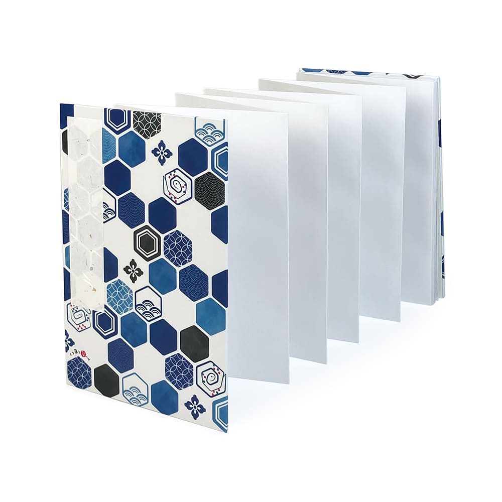 書き置きタイプのご朱印の四隅をジャバラ式台紙に差し入れて保管することができます。紙製で環境に配慮されており、ご朱印の雰囲気を損ないません。